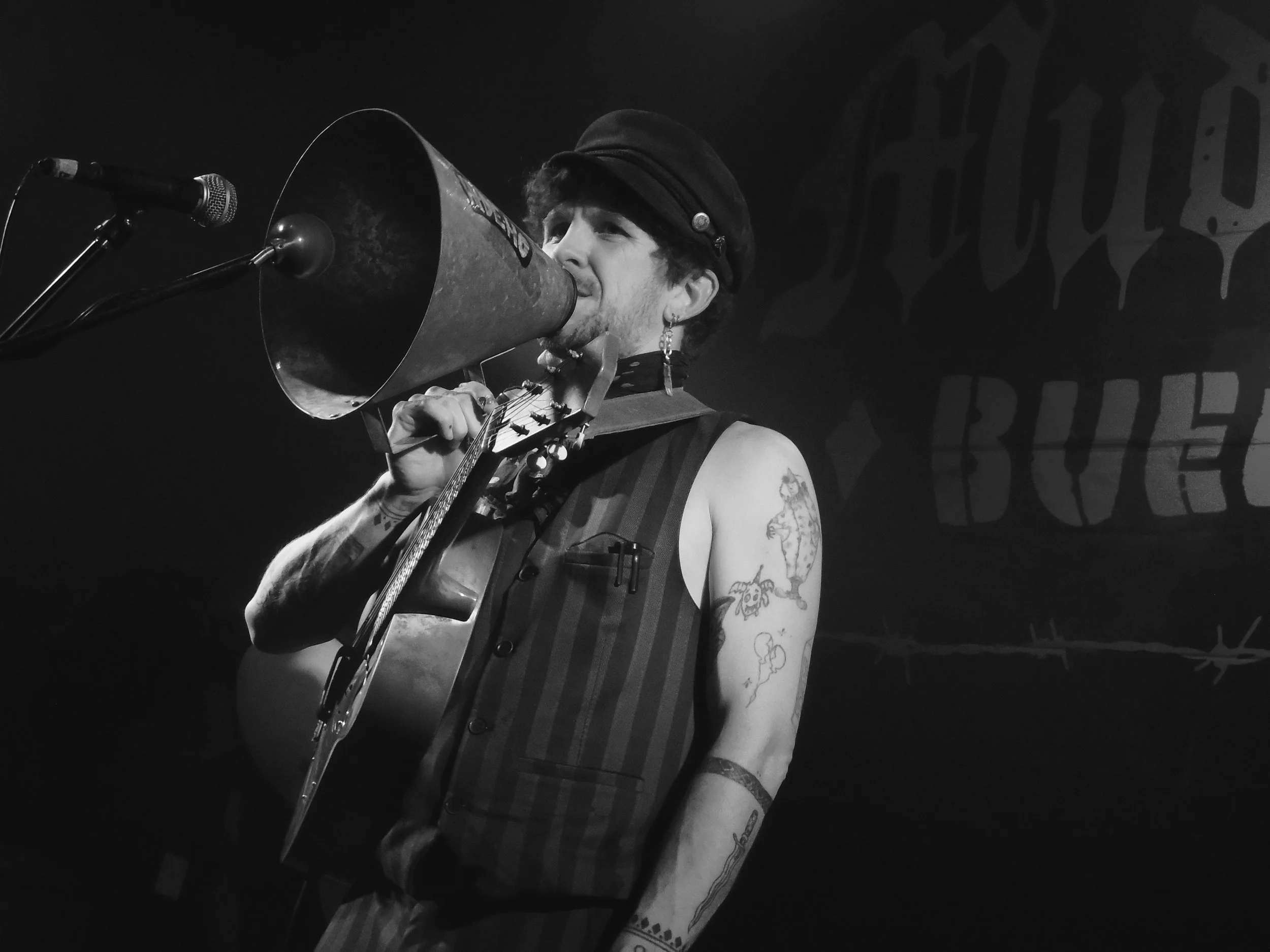 With a spontaneous stage presence honed from years of busking, Bosko’s shows are where his music truly comes to life — an infectious mix of blues, swing, and folk that speaks to the heart of American roots music. From festival stages to intimate venues, his dynamic blend of storytelling, finger-picking guitar, and a deep respect for tradition makes every show a unique & foot stomping experience that has gained him a loyal following.